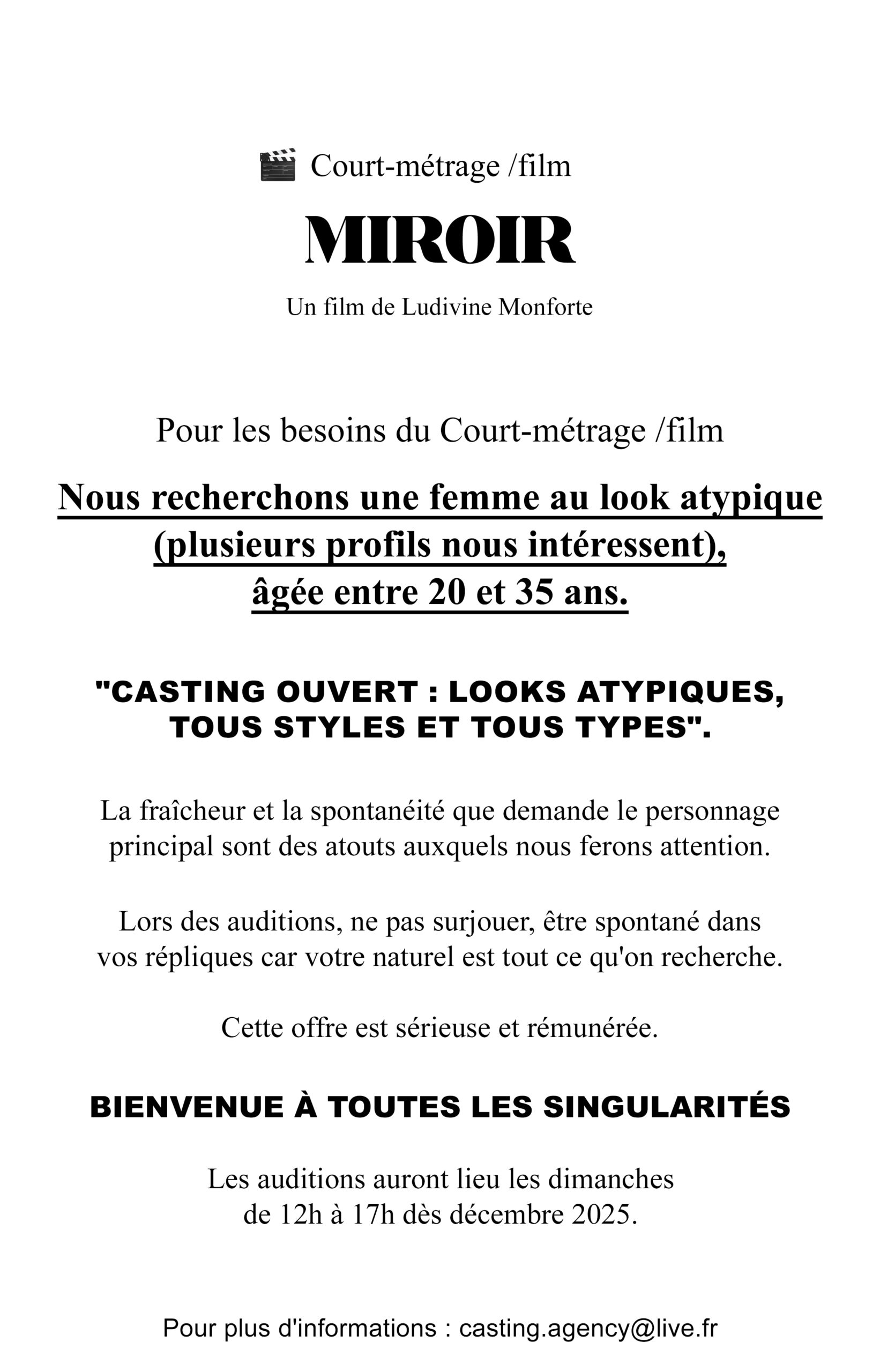 Aucune expérience dans le théâtre ou le cinéma n’est exigée, mais c’est un plus pour le caractère de certaines scènes.